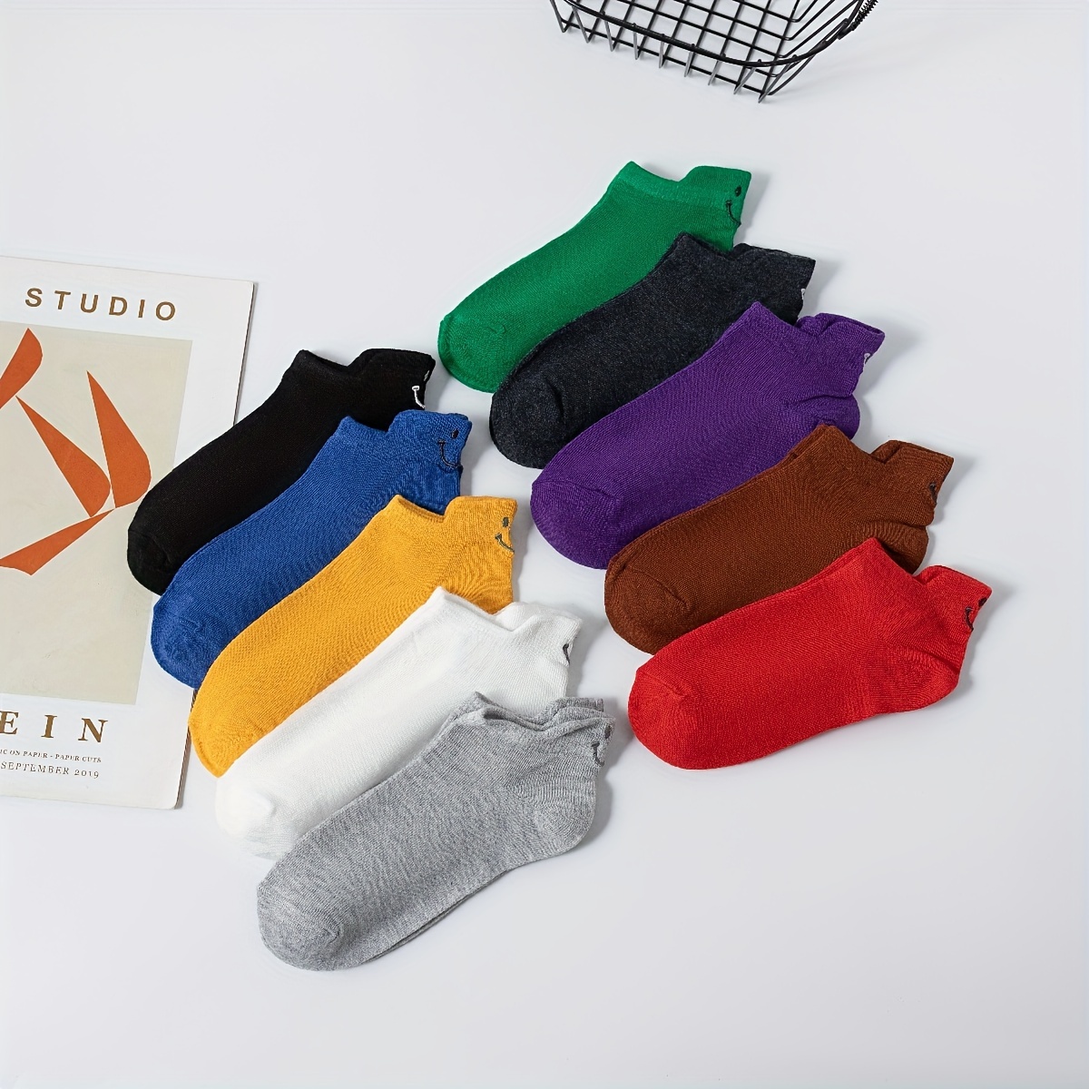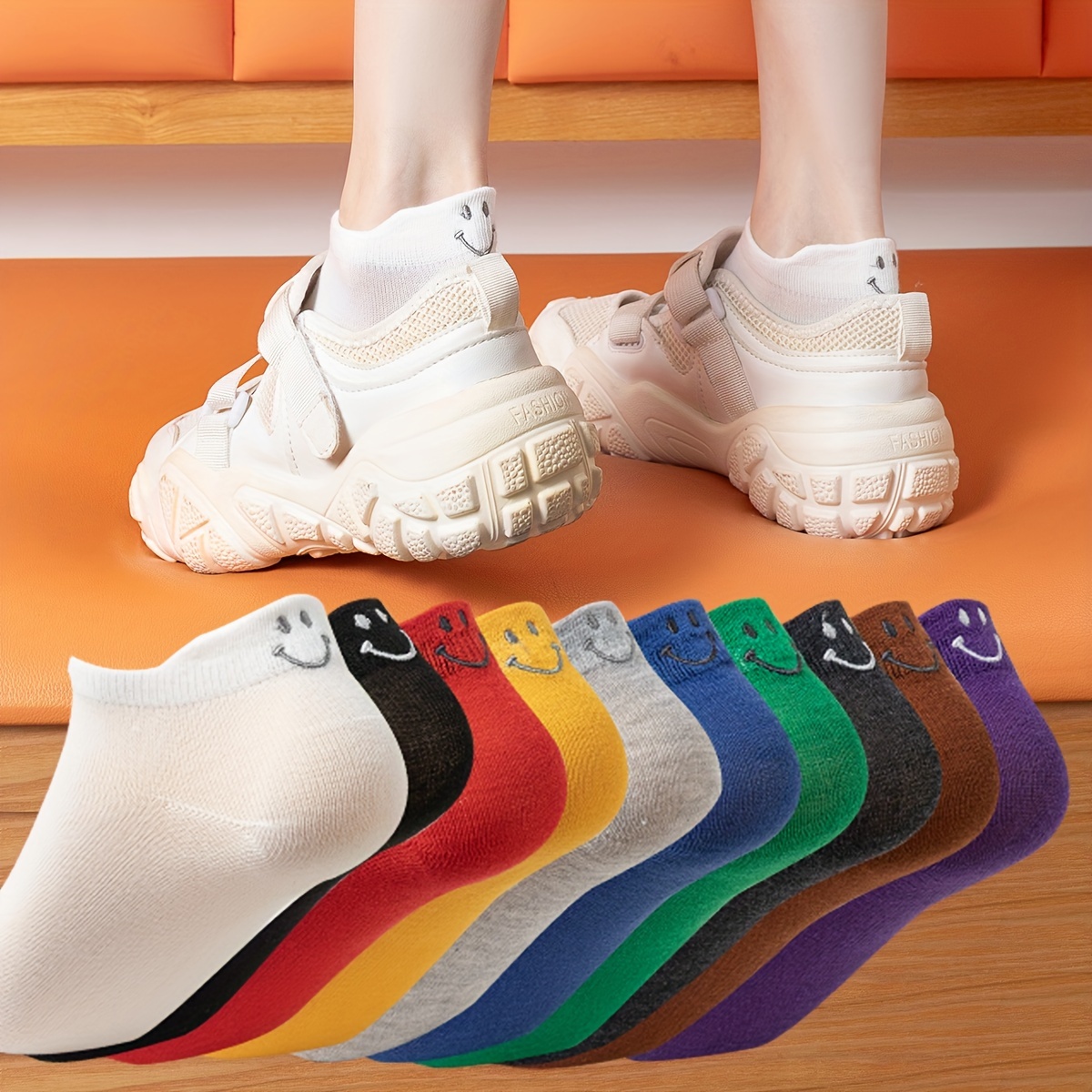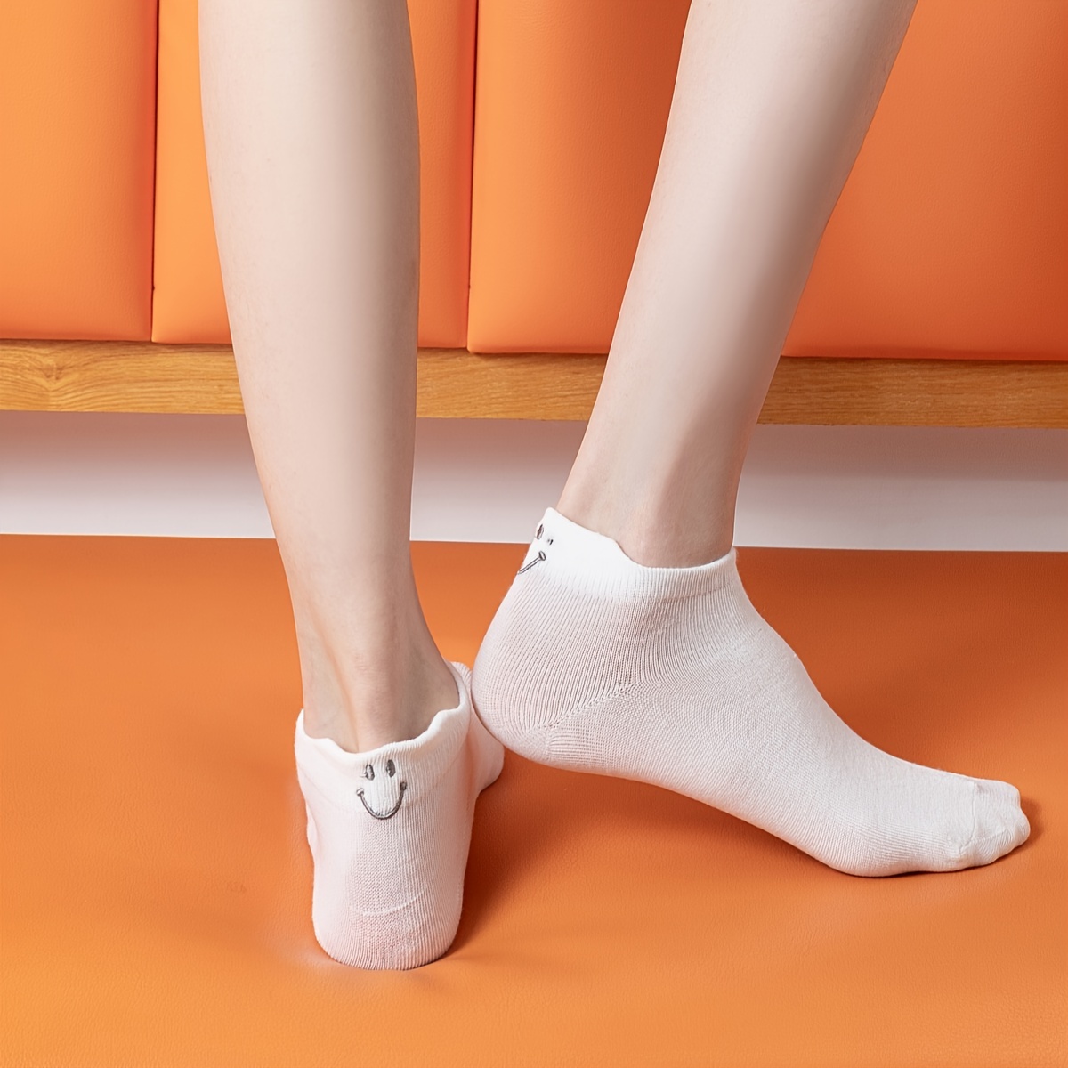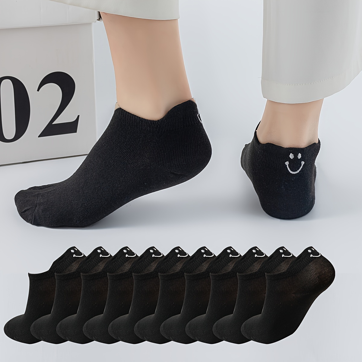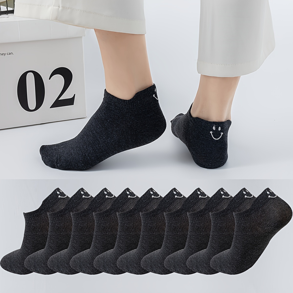 10 Pairs Comfy Embroidered Cartoon Smiling Face Ankle Socks, Breathable Short Women's Stockings & Hosiery