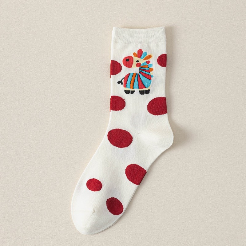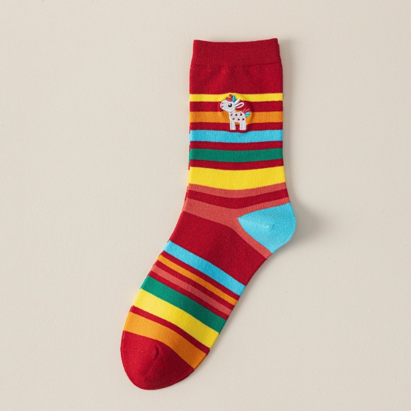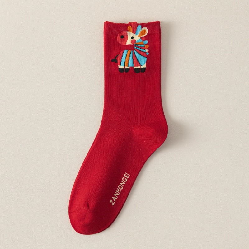 5 pairs of Festive Wedding Socks | Big Red Cartoon Rainbow Horse Chinese New Year Female Medium Tube Socks, Acrylic, Fabric, Geometric Pattern, Hand Wash or Professional Dry Clean